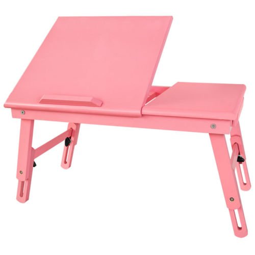Pour les vacances, rendre heureux avec le produit Table/ tablette de lit pliable PC portable, iPad, lecture, etc. double plateaux en bois (V-FBT02-P Rose)