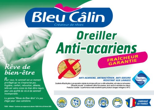 Détails du produit d' Bleu Câlin lot de 2 oreillers lavables anti-acariens 60x60 cm, traitement Sanitized (*), antibactérien, fraîcheur garantie, hygiène impeccable