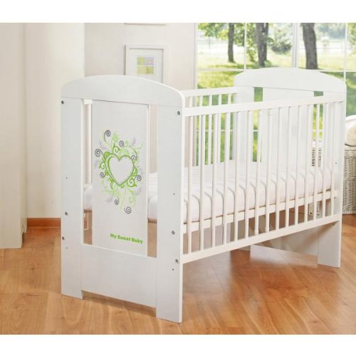 Détails sur le produit Lit bébé à barreaux 120 x 60 cm coeurs vert - Matelas INCLUS