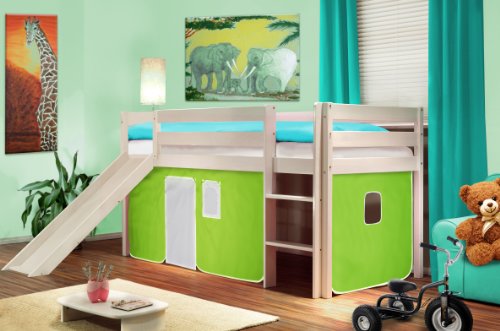 Lit surélevé d'enfants avec toboggan bois de pin massif blanc - Vert/Blanc - SHB/41/1032