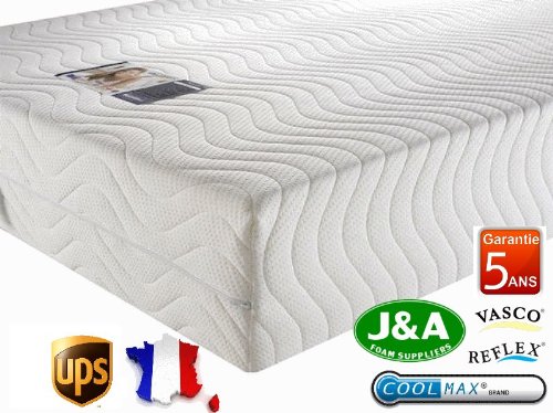 Deluxe 20cm vasco-reflex mémoire matelas en mousse déhoussable de luxe matelassé Coolmax Visco technologie élastique a été initialement développé par la NASA Les cellules individuelles dans l'étreinte de la mousse à la forme de votre corps pour un confort instantané Taille:.. 190 x 140 x 20cm luxe Coolmax couverture matelassée (amovib...
