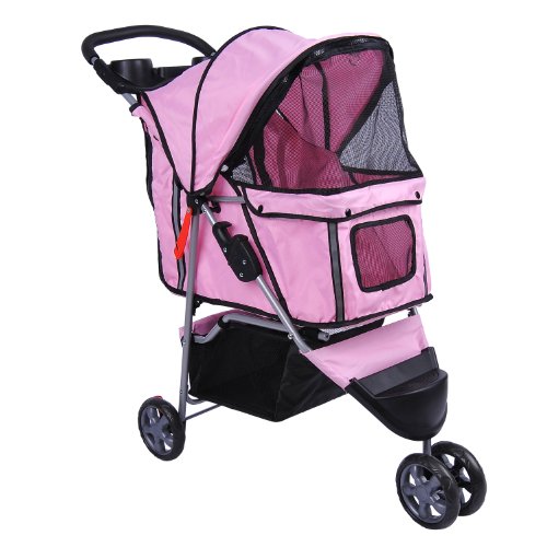 Détails sur le produit POUSSETTE BUGGY POUR CHIEN CHAT ANIMAUX CHARIOT ROUE AVANT 360°ROSE NEUF 15PK